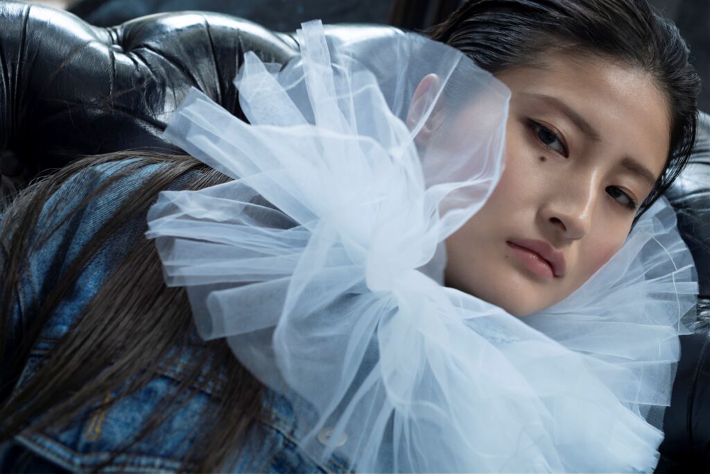 ひんやりとした空気を感じつつ、ノスタルジックに佇む冬にぴったりなスタイル…アンニュイな表情や緩急のあるヘアスタイルが映えるビジュアルになっております。